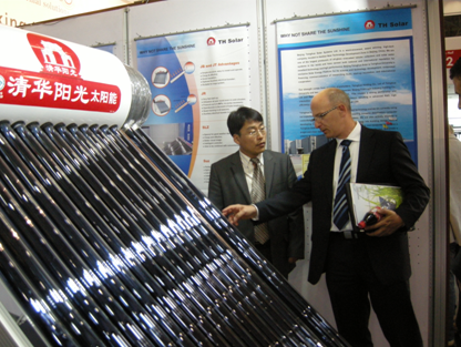 此次清華陽(yáng)光展出了高端產(chǎn)品-CPC集熱器,吸引了來(lái)自德國(guó)、瑞士、羅馬尼亞、波蘭、印度尼西亞、日本等國(guó)眾多參觀者的關(guān)注,當(dāng)場(chǎng)即表現(xiàn)出了采購(gòu)或合作意向。同時(shí),利用此次參展機(jī)會(huì),我們特地約見(jiàn)了幾家之前合作過(guò)的國(guó)外企業(yè),面對(duì)面的會(huì)談加深了彼此的信任感,也更加堅(jiān)定了合作的意念。